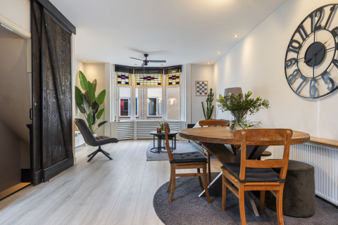 Ben je op zoek naar een ruime woning in een karakteristieke omgeving? Kom dan kijken bij deze ruime (5 kamers!) eengezinswoning met tuin! Een heel fijn huis, waar je geheel je eigen sfeer aan kunt geven. En waar je kunt genieten van het licht dat door de grote ramen binnenkomt, aan de (autovrije) voorkant met zicht op het water van de Karnemelksloot. Aan de achterkant kom je direct uit in een natuurspeeltuin met prachtige hoge bomen. De gezellige binnenstad en het station bevinden zich op loopafstand.